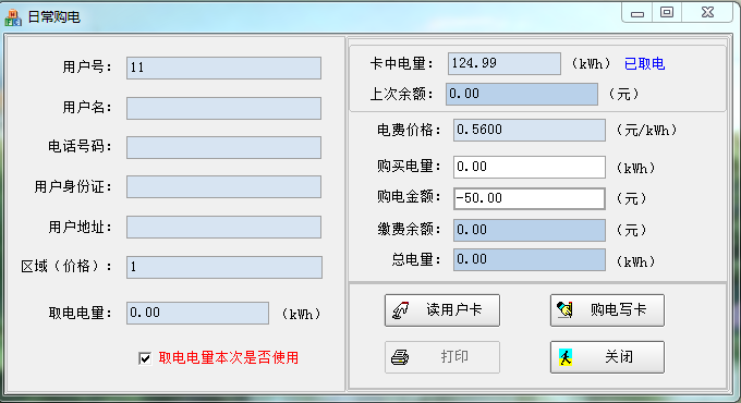 3.每次插卡時間要間隔10秒,否則電表無反應。