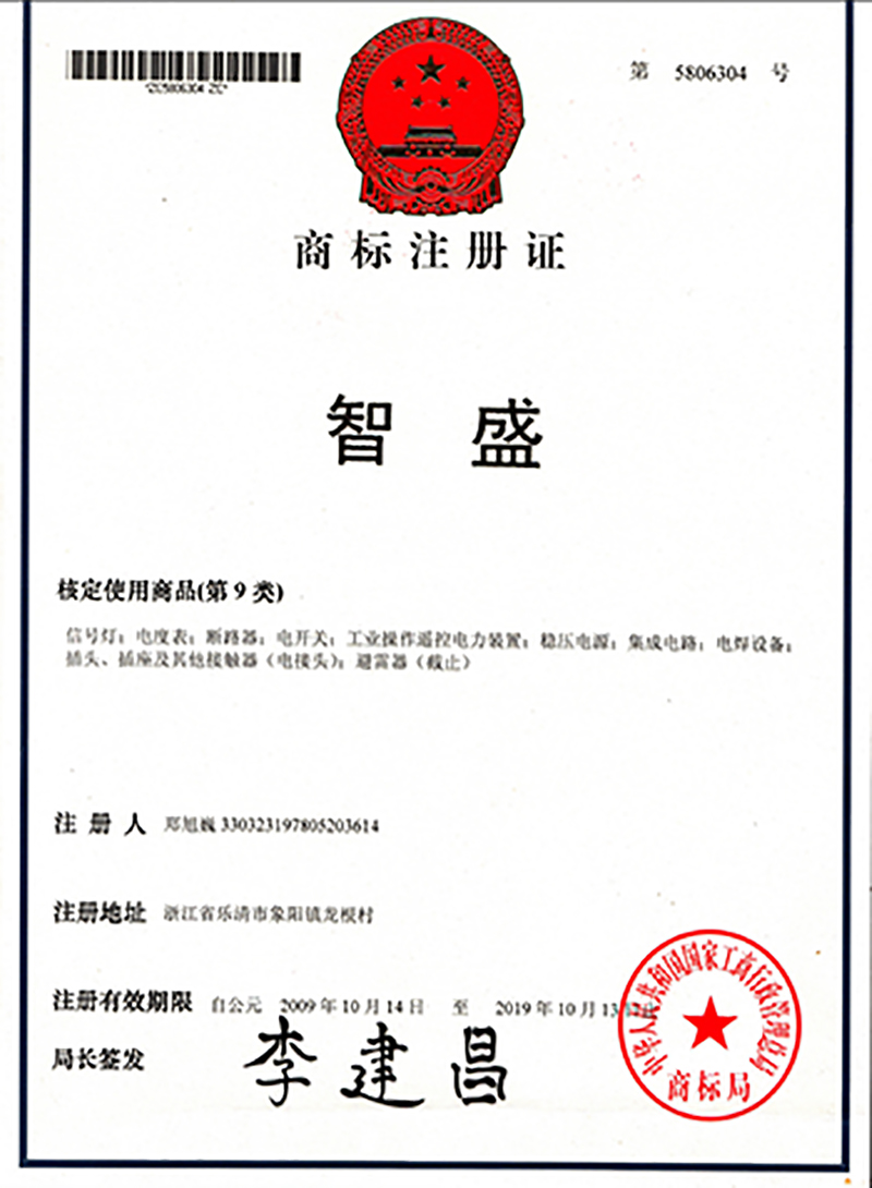 中文商標(biāo)證書