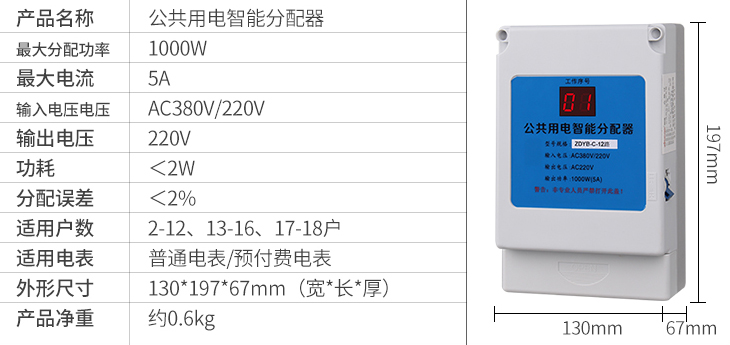 一、智盛牌公共用電智能分配器,是將公共樓道用電所消耗的電能(如樓道燈,對講防盜門等),自動分配到各受益用戶的電表中。每天輪流接通一戶電表,開機(jī)通電時第一戶電表隨機(jī)產(chǎn)生,達(dá)到公平分?jǐn)傠娰M的目的,本款公共用電智能分配器的特點:外置保險絲更換方便,可實時顯示均分到哪戶。
