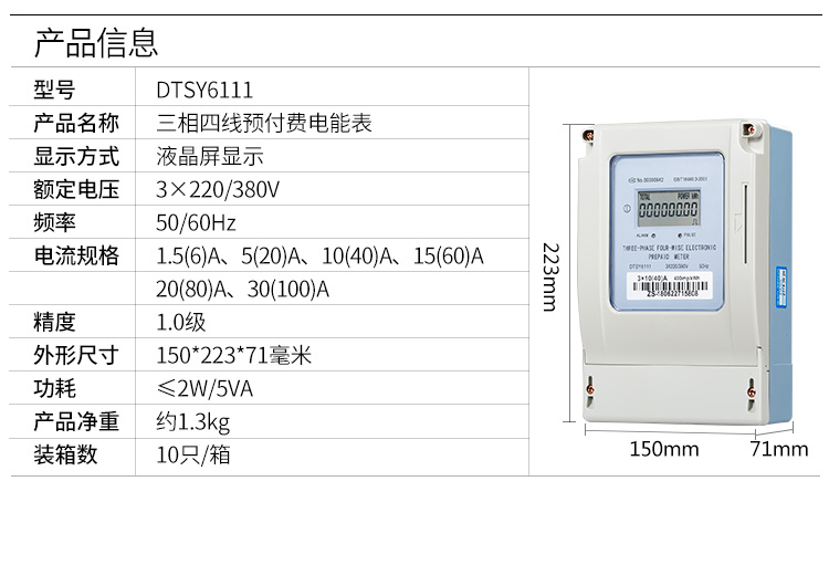 DTSY6111系列插卡式三相電子式預(yù)付費電能表系我公司采用集成電路,16位A/D轉(zhuǎn)換、數(shù)字乘法器、應(yīng)用數(shù)字采樣處理技術(shù)并由先進的單片機處理系統(tǒng)進行數(shù)據(jù)的采集、處理和保存及應(yīng)用SMT工藝制造的儀表。適用于計量額定頻率為50Hz或60Hz的三相三線或三相四線交流電網(wǎng)中有功電能的消耗。