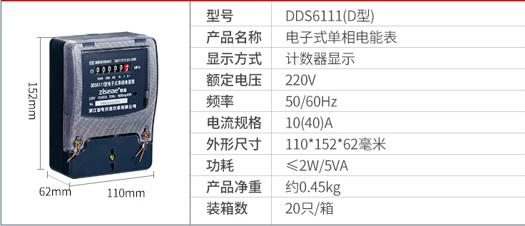 DDS6111型單相電子式電能表,由于采用集成電路和SMT制造工藝,使之測量準確度,穩(wěn)定性等均得到了可靠保證.適用計量額定頻率為50Hz,額定電壓為220V的單相交流有功電能.