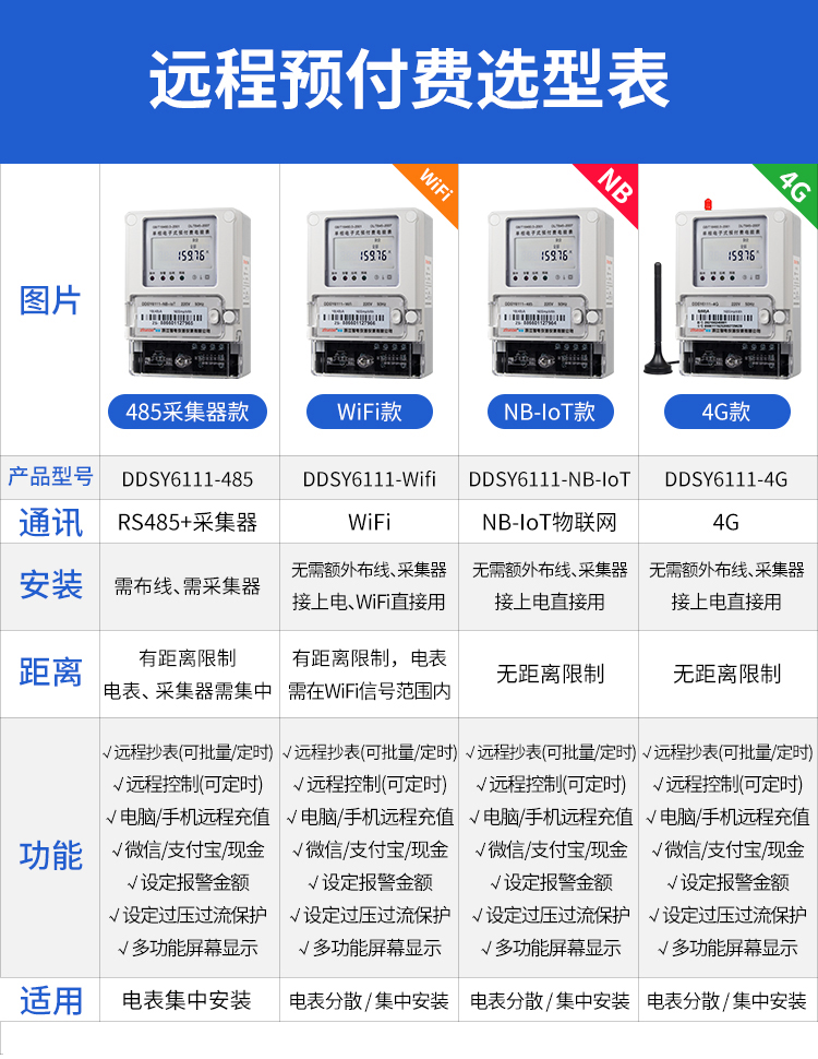 本公司DDSY6111/DDZY6111遠(yuǎn)程智能電表與本公司遠(yuǎn)程抄表系統(tǒng)和手機APP配套使用,遠(yuǎn)程抄表管理系統(tǒng)具有實時抄表、定時抄表外,還提供了設(shè)備管理功能,如告警、余額短信通知、遠(yuǎn)程充值、手機抄表、手機查詢、手機充值、預(yù)付費、后付費、自助充值機充值、遠(yuǎn)程拉合閘、各種查詢報表、統(tǒng)計報表下載等功能。
